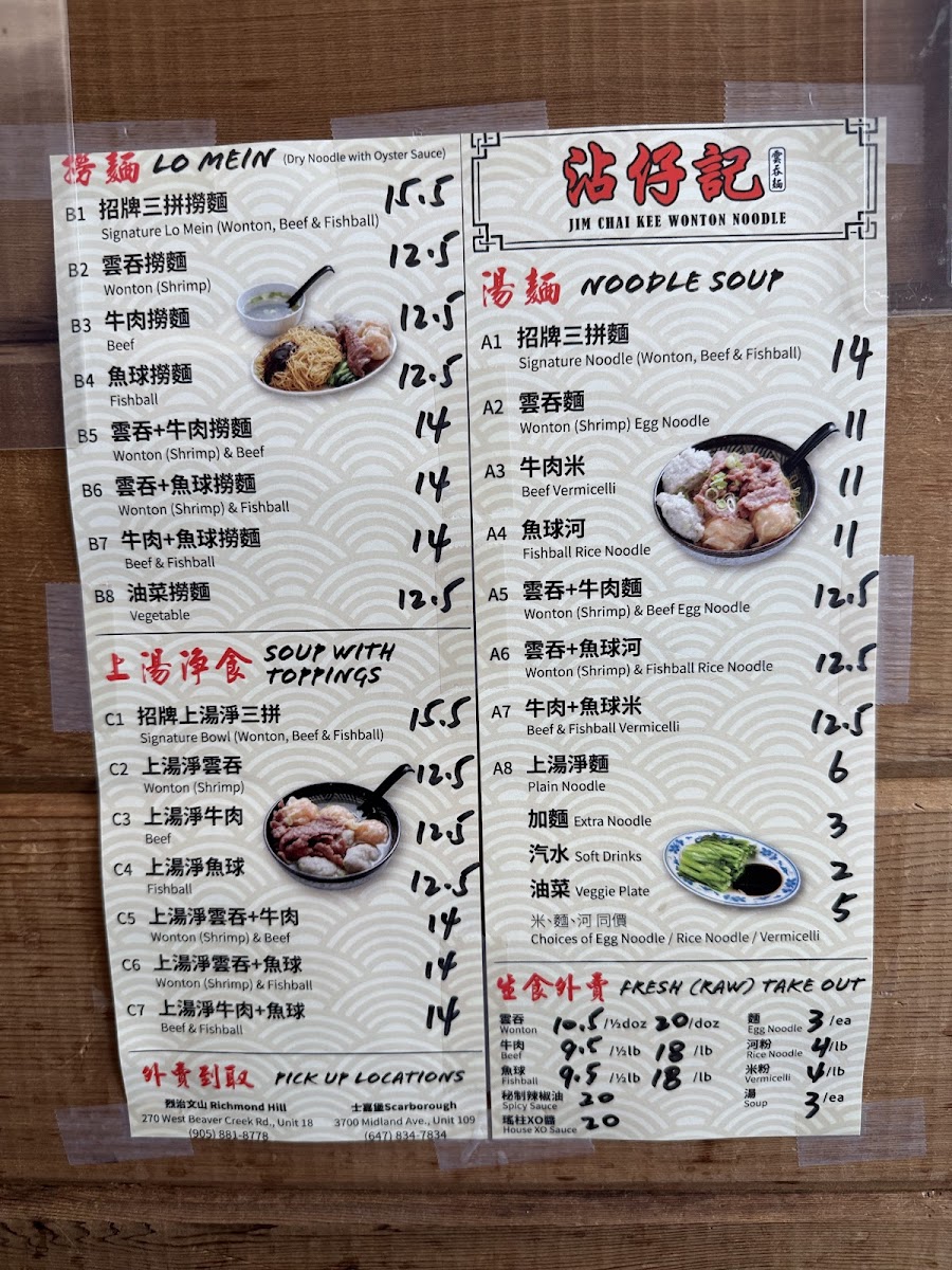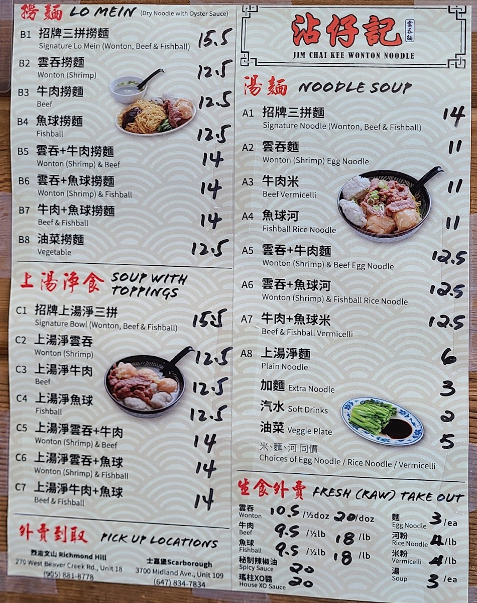 Welcome to Jim Chai Kee Wonton Noodle - Scarborough, a hidden gem located at 3700 Midland Ave #109. Renowned for its affordable and delicious menu, this restaurant specializes in massive wontons that have garnered rave reviews. Patrons enjoy quick service, often receiving their meals in under five minutes. The signature noodle dishes are a must-try, with options like shrimp wonton soup praised for flavor and portion size.